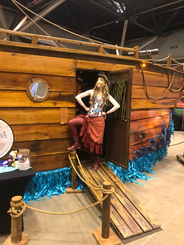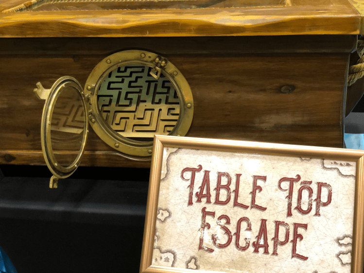 How it works: Our mobile escape room can arrive at any location. 6 “crew members” enter the ship for 10 minutes solving clues and riddles to escape a fate of sailing the eternal seas. While other event participants wait, they may attempt to solve additional puzzles outside the ship.